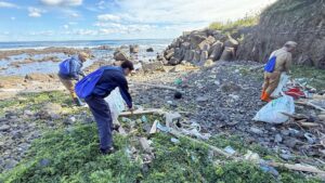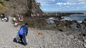 令和7年10月10日(金)、六ヶ所村主催の泊地区タタミ岩清掃奉仕活動へ弊社から2名が参加しました。